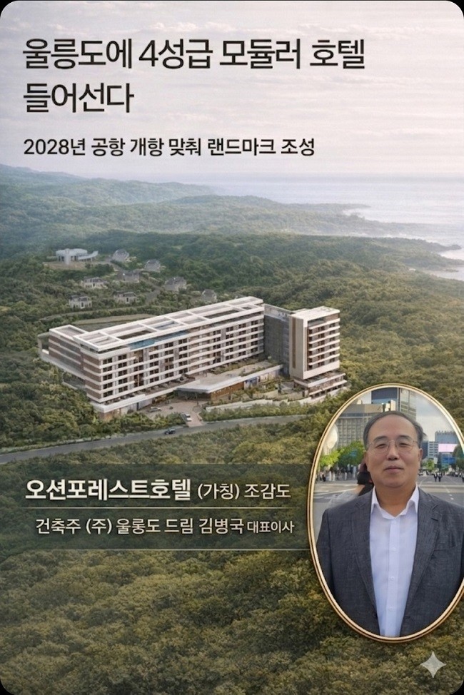 금강공업 관계자는 “2028년 공항의 문이 열릴 때 오션포레스트 호텔은 울릉도의 가장 빛나는 상징이 될 것”이라며 “섬의 한계를 넘어 관광의 새로운 기준을 제시하는 혁신적인 여정을 성공적으로 완수하겠다”고 밝혔다.