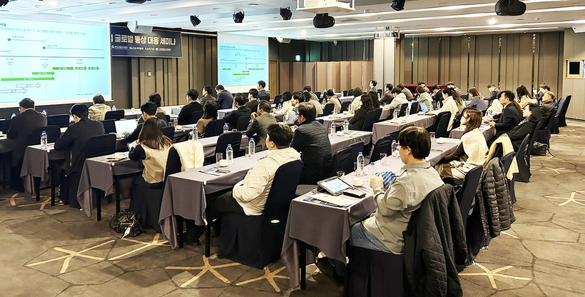 세미나는 두 가지 주요 세션으로 진행됐다. 첫 번째 세션에서는 ESG 전문기관 코데이터솔루션㈜이 ‘CSDDD(기업 지속가능성 실사 지침) 중심 EU 신통상규범 동향 및 대응방안’을 주제로 EU의 입법 동향과 대응 전략, 글로벌 공급망 리스크 관리 방안을 소개했다. 두 번째 세션에서는 딜로이트 안진회계법인이 미국 관세정책 변화와 철강·알루미늄·자동차·구리 품목 관세 및 상호관세 복합 적용 사례를 설명하고, 수출기업 담당자와 질의응답 시간을 가졌다.