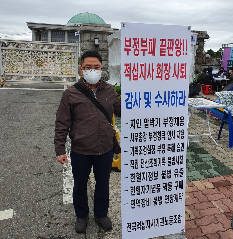 이에 대한적십자사 노동조합 중 한 곳인 전국적십자사노조는 지난달 12일부터 국회 앞에서 '릴레이 1인 시위'에 들어갔다.