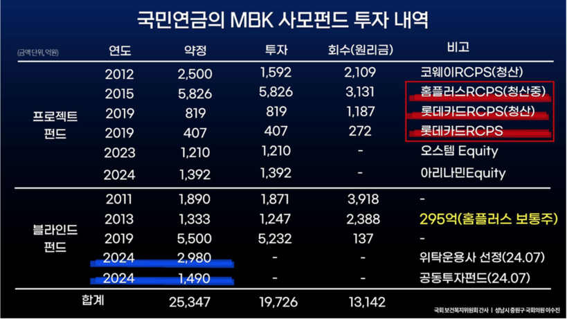 ◇ “국민연금공단 이사장, MBK 투자로 인한 손실에 대해 국민께 사과해야”