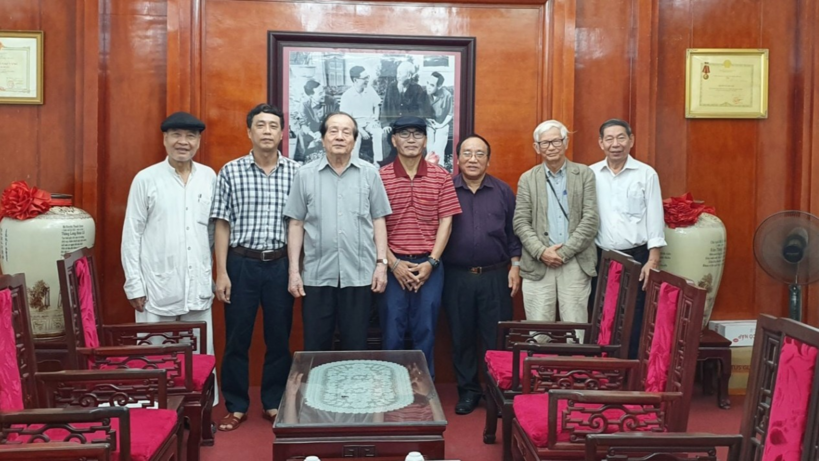 ▲ 지난해 8월 8일 오후 베트남 하노이 소재의 베트남작가협회를 방문한 장건섭 시인(가운데)이 휴 틴 베트남작가협회 회장(왼쪽에서 세번째)와 웅 웬 빙 프엉(왼쪽에서 두번째) 시인 등 베트남작가협회 소속 시인들과 함께 기념촬영을 하고 있다. |