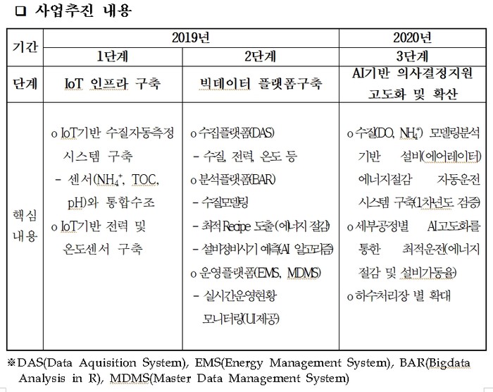 한편 ‘공공하수처리시설 지능화 사업’은 한국정보화진흥원에서 추진한 ‘2019년 국가기반시설(인프라) 지능 정보화 사업’ 공모를 통해 올해 4월에 선정된 과제로 공공하수처리시설에 사물인터넷(IoT), 빅데이터, 인공지능(AI) 등 지능화 기술을 적용하는 사업이다.