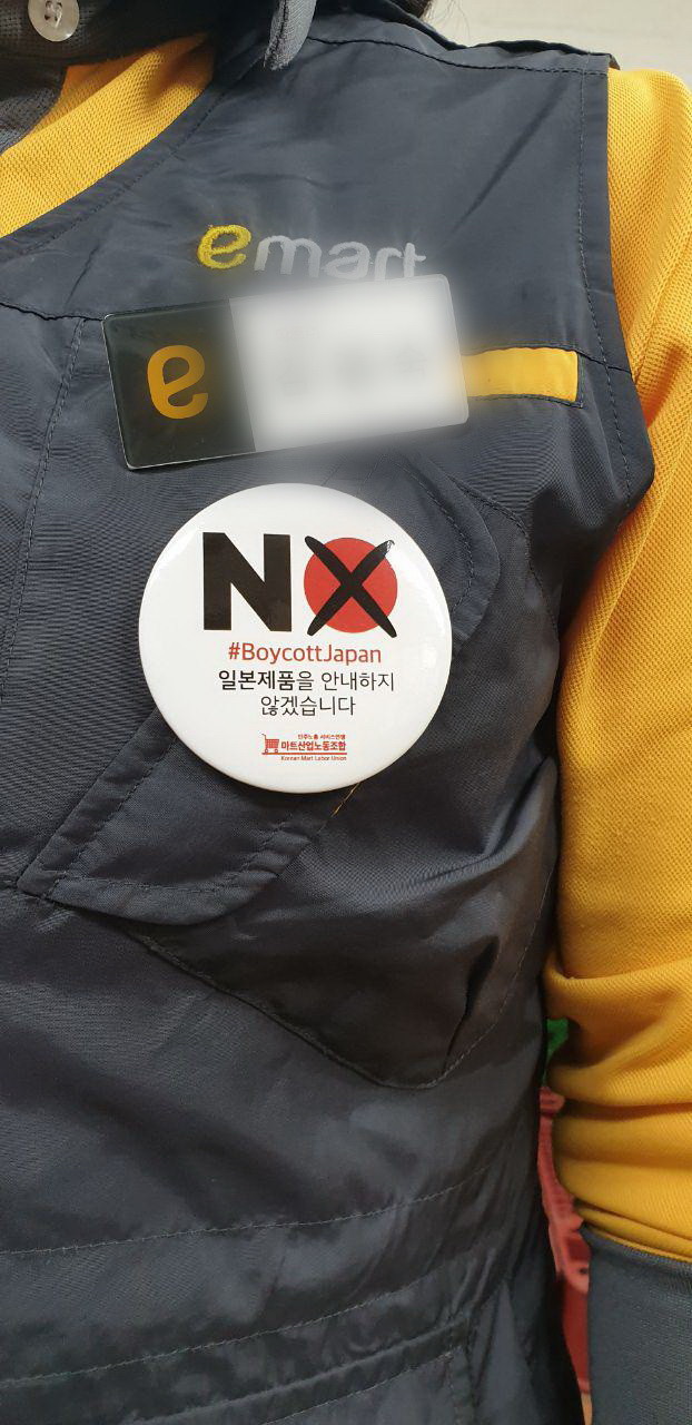 [일요주간=채혜린 기자] 일본이 한국에 수출하는 반도체 소재, 부품 등에 대해 수출규제에 이어 한국을 화리트리스트 국가에서 배제(일본에서 전략물자 수출 시에 허가 절차 등에서 간소화 혜택을 적용하는 국가의 목록)하면서 국내에서 일본 제품 불매운동이 확산되고 있는 가운데 신세계 계열의 대형할인매장 이마트가 일본제품 안내 거부 뱃지를 착용한 직원을 근무지에서 내쫓았다는 주장이 제기돼 논란이 일고 있다.