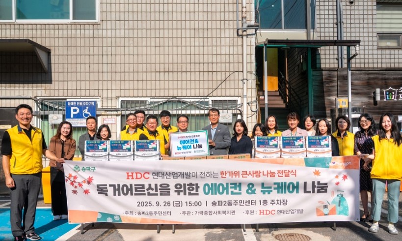 이번 봉사활동에서 주거 환경이 취약한 네 가구에는 에어컨을 새로 설치했고, 1인 가구에는 영양식과 영양제로 구성된 건강식품 키트를 전달했다. HDC현대산업개발 임직원들은 직접 가정을 방문해 물품을 전달하며 주민들이 따뜻한 명절을 보낼 수 있도록 지원했다.