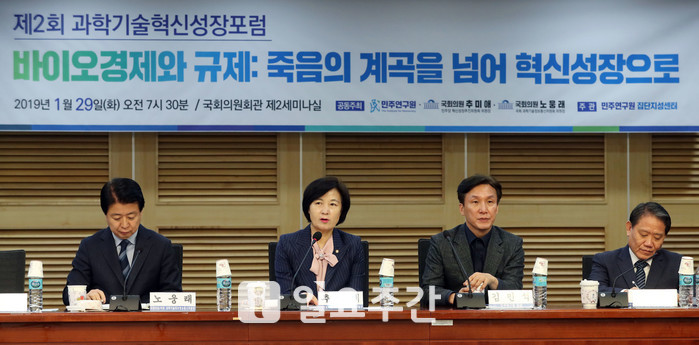 ▲ 지난 1월29일 국회 의원회관 제2세미나실에서는 '바이오경제와 규제 : 죽음의 계곡을 넘어 혁신성장으로'라는 주제로제 2회 과학기술혁신성장포럼이 열렸다. |