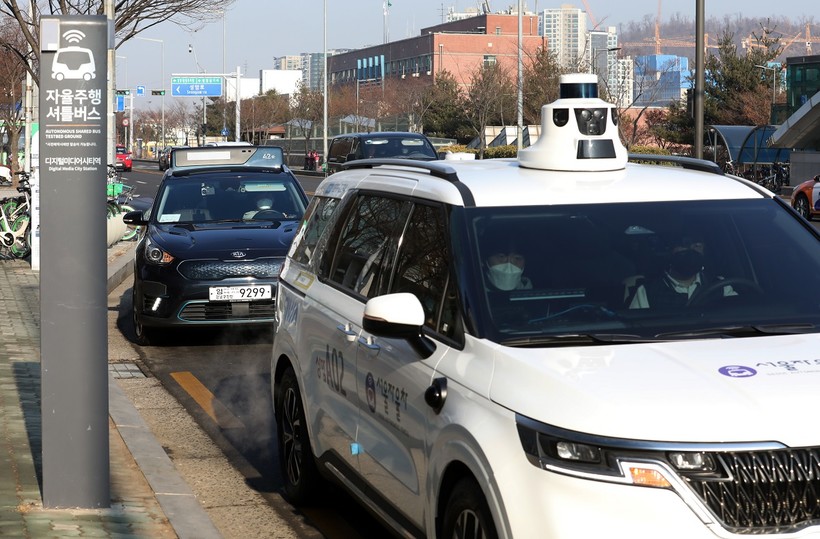 ▲서울 마포구 자율주행자동차 시범운행지구 디지털미디어시티역 앞에서 자율주행차가 승객을 기다리고 있는 모습. (사진=뉴시스) |