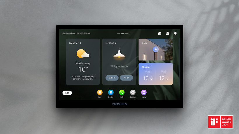 [일요주간 = 이수근 기자] 경동나비엔이 스마트홈 솔루션 ‘나비엔 스마트 월패드’로 세계 3대 디자인 공모전 중 하나로 꼽히는 독일 ‘iF 디자인 어워드 2024(International Forum Design Awards 2024)’ 유저 인터페이스(UI) 부문 본상을 수상했다고 12일 밝혔다.