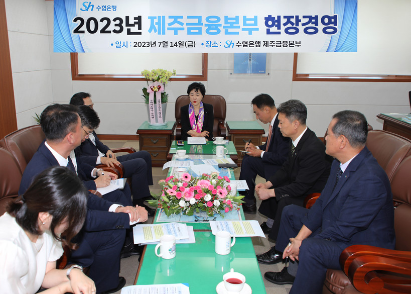 [일요주간=김영란 기자] Sh수협은행 강신숙 은행장이 지난 14일, 제주금융본부와 일도지점 등 제주지역 영업점을 찾아 고객접점 서비스를 점검하고 하반기 경영목표를 설명하는 현장경영을 진행했다.