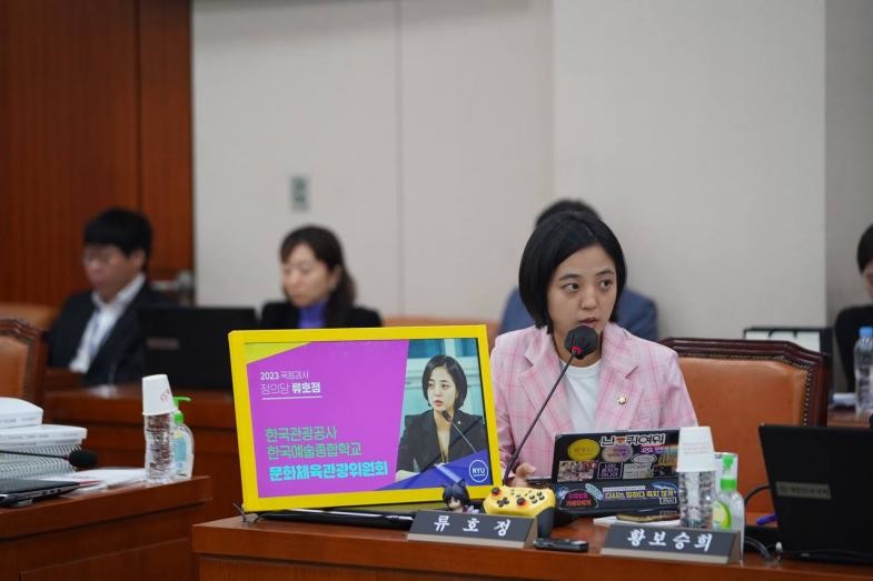 ▲국회 문화체육관광위원회 국정감사에서 정의당 류호정 국회의원이 이재환 부사장에게 질의 중인 모습.(사진=류호정 의원실 제공) |