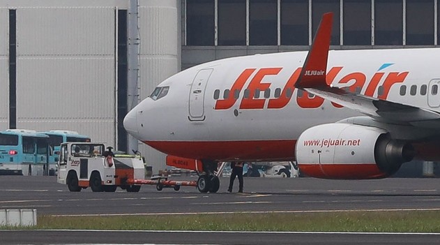 ▲사진은 지난해 10월 제주국제공항에 착륙한 뒤 고속탈출유도로로 이동하던 중 타이어에 펑크가 나 정비를 위해 이동하는 제주항공기.(사진=newsis) |
