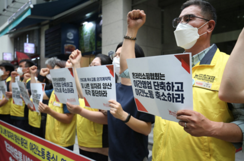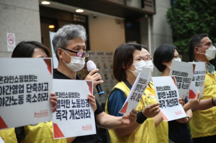그러면서 “이렇게 온라인배송노동자들은 열악한 노동환경에서 일하고 있다. 특히 지금처럼 더운 여름 외부에서 배송일을 하는 노동자들은 폭염 속에 그대로 노출돼 있고 점포에 돌아와서도 제대로 쉬지 못하고 또다시 일을 해야 한다”라고 토로했다.