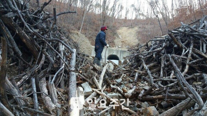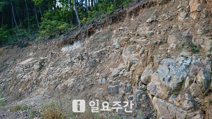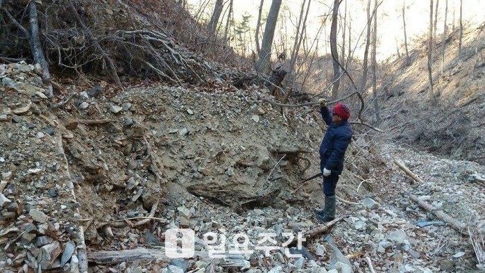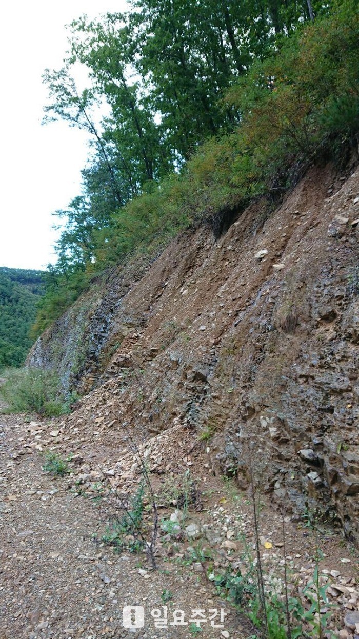 ▲ 이달 초 태풍18호 미탁으로 인해 쏟아진 강우로 풍력개발 예정지에 개설된 임도가 토사로 유실된 장면.(청송면봉산 풍력저지연합대책위원회 제공) |