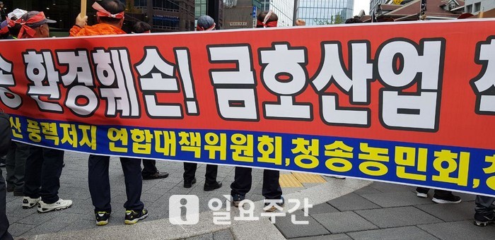 이와 관련 대책위는 지난 10일 오전 11시경 서울시 종고구 소재 금호산업 본사 앞에서 청송면봉산풍력사업의 부당성을 알리는 기자회견을 개최했다.