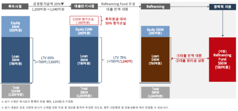 2022년 1분기 이후 유럽 역세권 건물의 경우 25% 이상 하락했으며 유럽 상업용 부동산 거래량도 60% 감소한 것을 비롯해 뉴욕의 오피스 공실률이 20%, 가격은 22% 하락하는 등 전세계적 오피스 가격 하락세가 전망되면서 국내 개인 투자자들의 손실 우려가 커지고 있다.