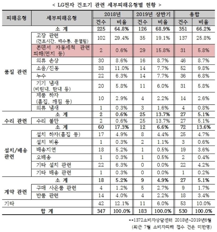 소비자들이 제기한 민원은 자동 세척이 된다는 제품 안 콘덴서 안에 먼지가 잔뜩 끼고 건조가 끝난 의류에서 냄새가 난다는 등의 불만이 대다수를 이뤘다.