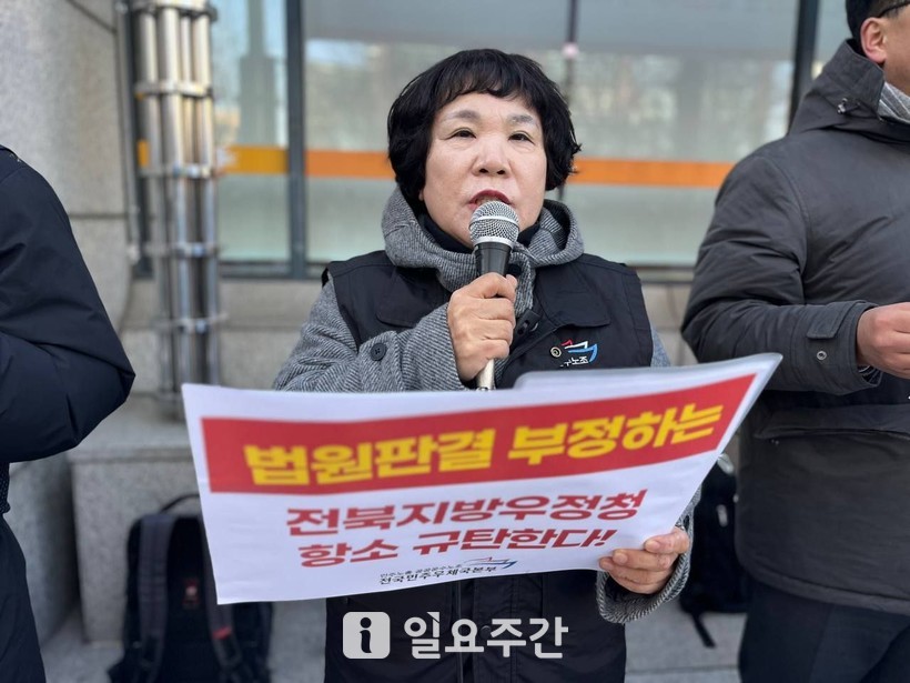전국공공운수노조 이윤희 부위원장 역시 우정사업본부의 항소를 규탄하고 약 2년 간 이어졌던 당사자들에 대한 피해를 인정하고 사과할 것을 촉구했다.