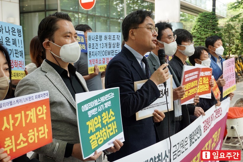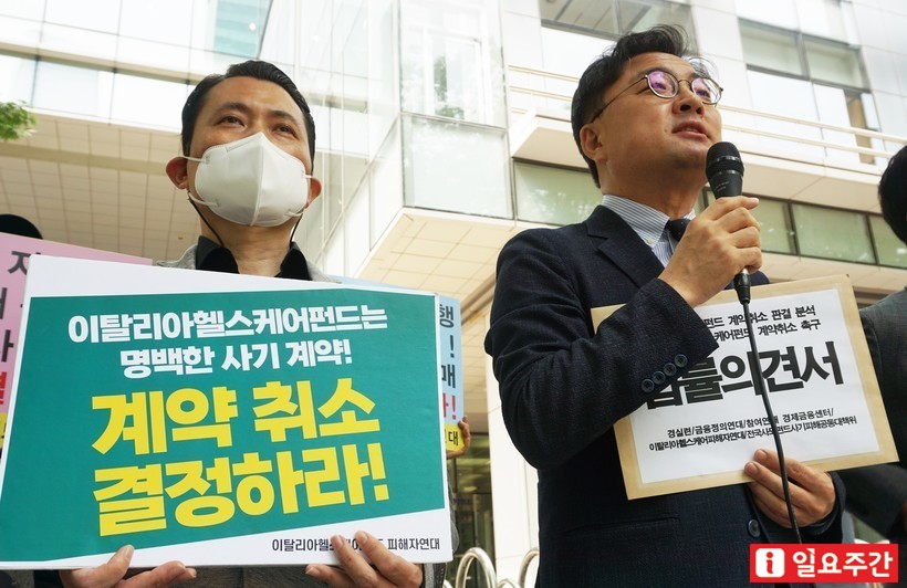 [일요주간 = 성지온 기자] 금융감독원의 이탈리아 헬스케어 펀드에 관한 분쟁조정위원회를 앞두고 피해자들과 시민사회단체 등은 ‘배상 100%(계약취소)’ 결정을 촉구했다. 펀드 판매 계약이 거짓말로 이뤄졌으니 이를 취소하고 투자금을 돌려달라는 주장이다.