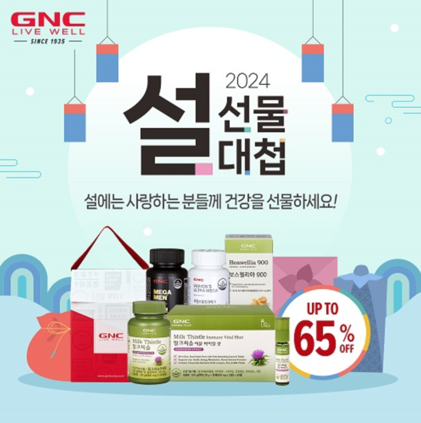설 선물대첩 기획전의 대표 제품으로 밀크씨슬, 비타민B가 한 병에 담긴 ‘밀크씨슬 이뮨 바이탈 샷’과 남성용 종합 비타민 ‘메가맨’, 여성용 종합 비타민 ‘우먼스 울트라 메가’ 등이 있다. GNC 첫 구매 고객에게는 10% 추가 할인 쿠폰을 지급하며 구매 금액에 따라 최대 5% 중복 할인 쿠폰을 제공한다.