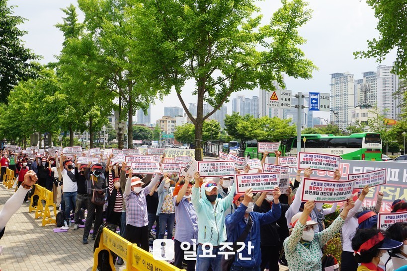 실제로 이날 집회 참석을 위해 반차를 냈다는 도시개발조합원 A 씨는 “1년만 기다리면 새 아파트에 입주할 수 있게 해준다고 전 조합장과 전 업무대행사 직원이 얘기했다. 그 말만 믿고 지역주택조합에 가입했다”라면서 “하지만 벌써 8년이 흘렀다. 임대인에서 임차인으로 생활하는 게 불안해 집을 매매하려고 하다가도 조합원 자격 조건에 위반된다길래 이러지도 저러지도 못하고 있다”라고 설명했다.