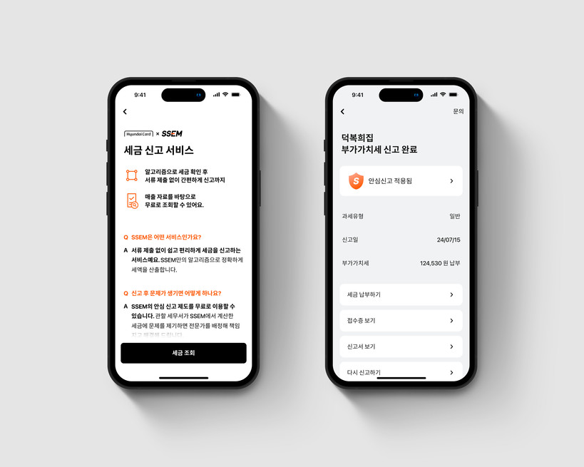 이용 방법은 간단하다. 현대카드 앱 내 ‘사장님 홈’에서 세금 신고 서비스 메뉴를 선택하고 본인 인증만 하면 된다. 개인사업자 전용 상품인 MY BUSINESS카드를 이용하는 회원이라면 누구나 이 서비스를 이용할 수 있다. 이번 세금 신고 서비스는 SSEM(쎔)과 협업해 제공한다.