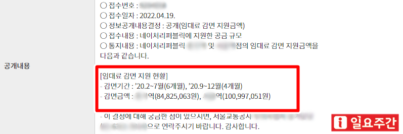지난 22일 서울교통공사는 정보공개 포털을 통해 지난 2020년 2월부터 7월까지, 2020년 9월부터 12월까지 각각 네이처리퍼블릭 A, B 점포에 대해 84,825,063원, 100,997,051원의 임대료 감면 지원이 이뤄졌다고 밝혔다.