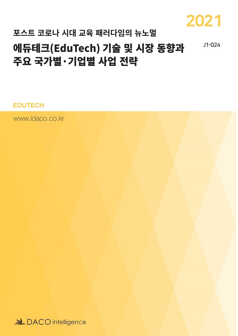 이번 보고서는 포스트 코로나 시대를 대비해 새로운 교육 패러다임을 제시하는 에듀테크 기술 개발 동향과 시장 전망, 주요국과 주요기업의 사업 전략 등을 정리 분석했다.