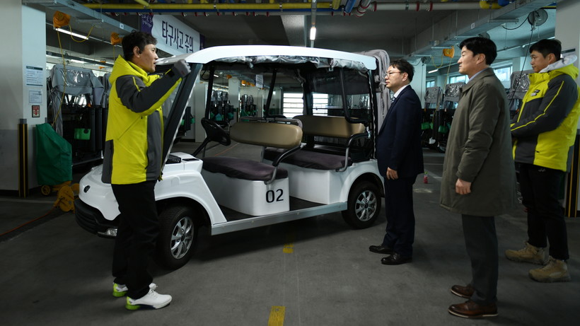 | ▲ 도로교통공단과 강원랜드 하이원 CC가 골프장 카트 안전사고를 예방하기 위해 실시한 안전운전 교육 담당자들이 골프 카트의 안전장치를 점검하고 있다. <사진=도로교통공단> |