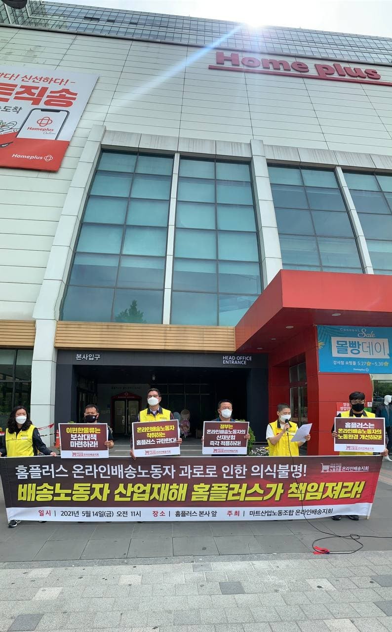 지난해 11월 롯데마트 온라인 배송노동자 A씨가 배송 도중 사망한데 이어 지난 4월 2일 새벽, 신세계 온라인 전용 SSG닷컴 김포네오물류센터에서 새벽배송일을 하던 배송노동자 B씨가 사망했다. 이런 가운데 홈플러스 서울 강서점에서 온라인배송노동자로 일하던 C씨가 5월 11일 오전, 출근을 준비하던 중 갑자기 쓰러져 병원으로 후송 됐으나 수술도 받지 못한 채 의식불명 상태인 것으로 알려졌다.