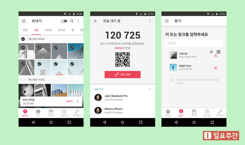 ▲어디서든 파일을 주고받을 수 있는 앱 '센드 애니웨어' (이미지 편집=일요주간)