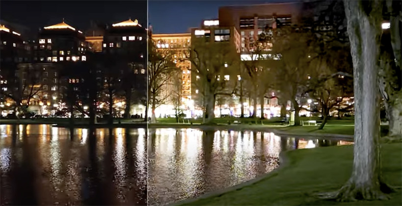 ▲블링크AI사가 공개한 야간 모드 촬영 화면 / 일반 야간 모드(좌) 샤오미 Mi 11 야간모드(우) (이미지 편집=일요주간) |
