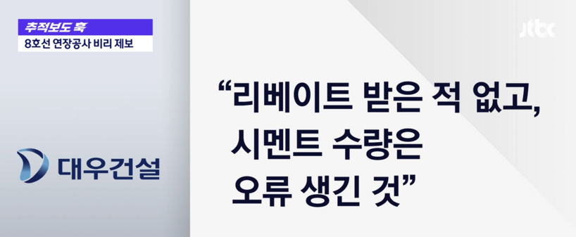 이와 관련해 대우건설 관계자는 “시멘트 수량은 공사 중간 설계가 바뀌는 과정에서 생긴 오류이며 공사비 리베이트 의혹은 사실이 아니“라고 밝혔다. 불법 재하도급 의혹 역시 ”타사 현장을 오가는 숙련공들이 직고용을 꺼려 장비 협력사 소속으로 둔 것일 뿐”이라고 해명했다.