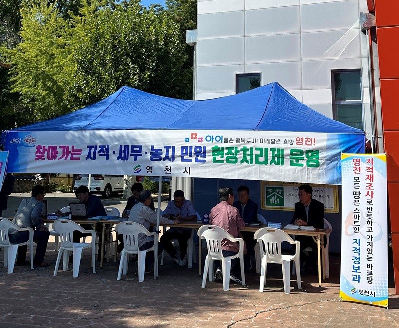 [일요주간=최부건 기자] 영천시(시장 최기문) 지적정보과는 지난 10일 임고면 행정복지센터를 방문, ‘찾아가는 지적민원 현장처리제’를 운영해 주민들로부터 큰 호응을 얻었다고 밝혔다.