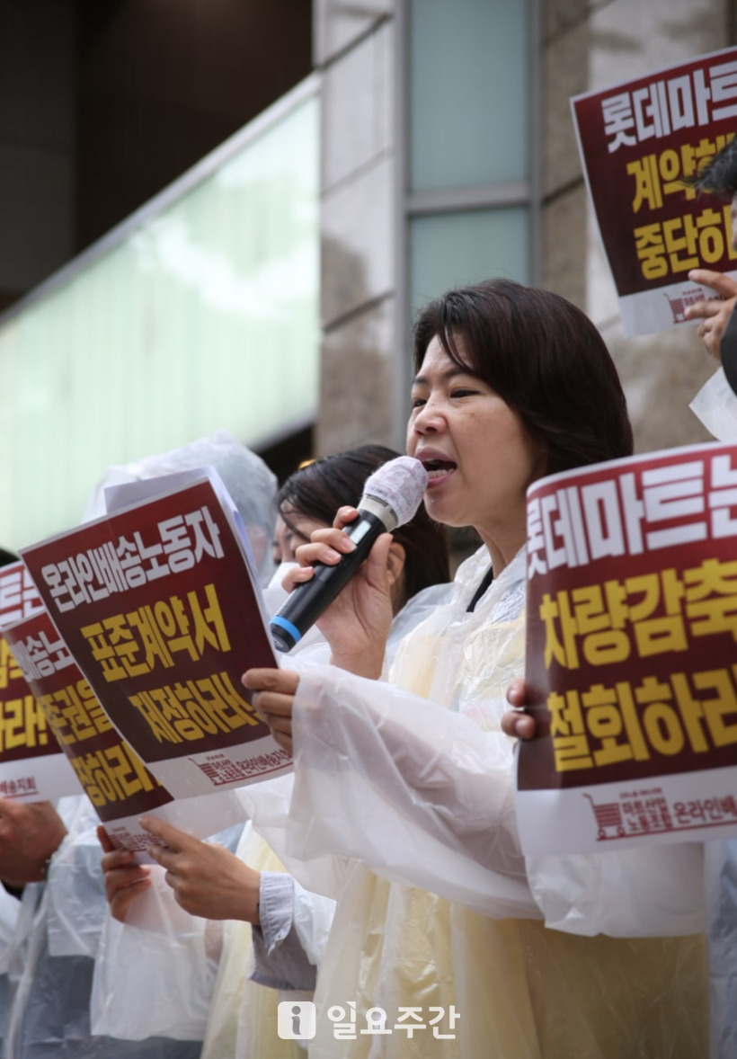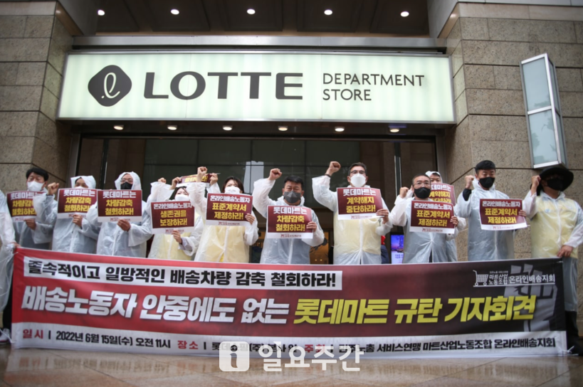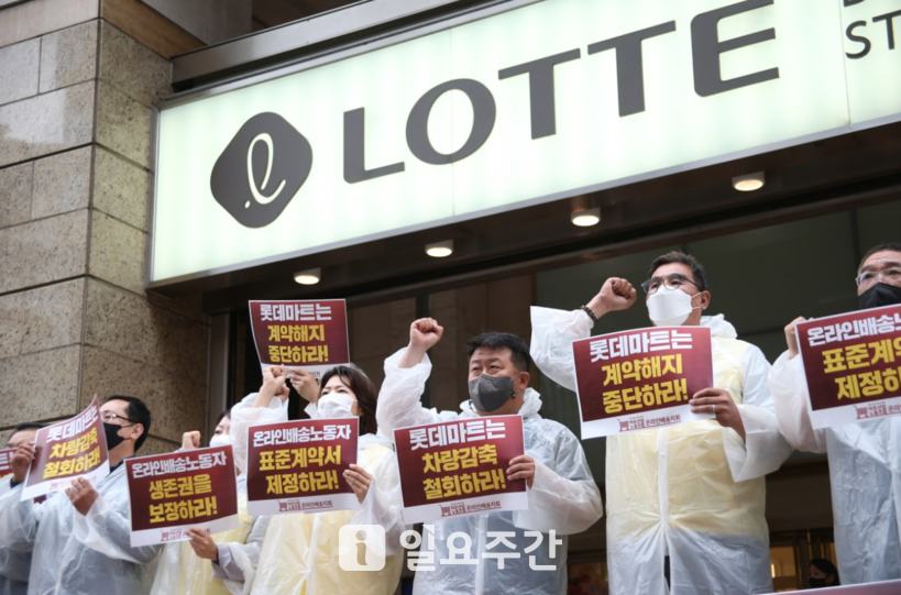 이어 “그럼에도 배송노동자들은 생계를 책임져야하는 한가정의 가장이었기에 참고 일해왔다. 고객이 주문한 소중한 상품을 배송하기 위해 최선을 다해왔다”며 “하지만 롯데는 마트에서 일하는 배송기사들 중에 4분의 1에게 그만두라고 통보했다”라고 참담한 상황을 전했다.