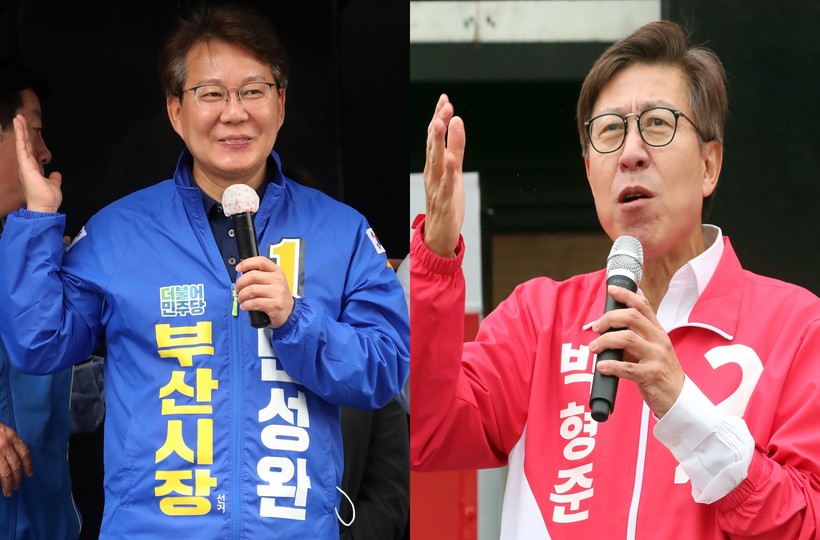▲변성완 더불어민주당 부산시장 후보(좌)와 박형준 국민의힘 부산시장 후보(우).[사진=newsis] |