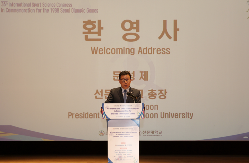 이어 선문대학교 문성제 총장의 환영사가 이어졌다. 문성제 총장은 “이번 학술대회가 스포츠를 통해 국제적 소통과 이해를 촉진하고 세계 평화와 협력을 증진하는 중요한 계기가 되기를 기대한다”고 말했다. 환영사 이후 선문대학교 무도학부가 무도 시범을 선보이며 학술대회의 시작을 알렸다.