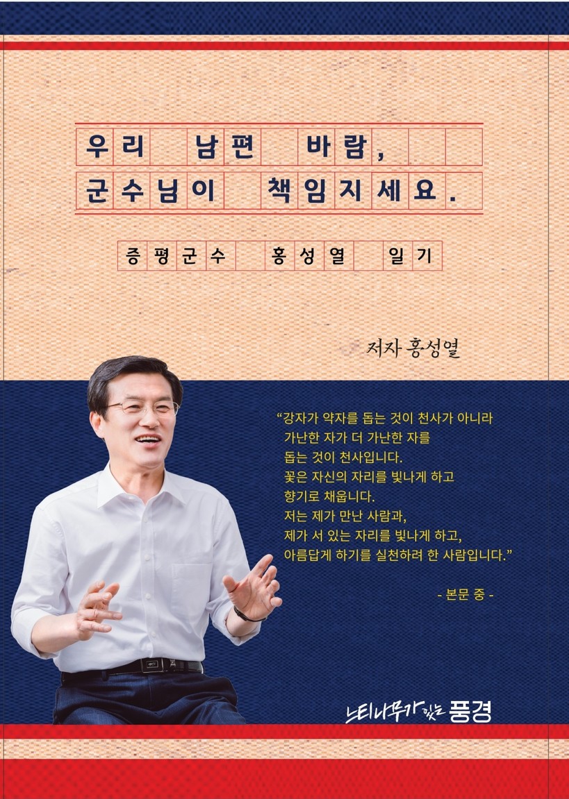 홍성열 군수는 군민과 소통하기 위하여 월요편지를 쓰기 시작했다. 다양한 주제들을 모아 2014년에 1차 ‘홍성열의 러브레터’라는 제목으로 출간했다. 이번에 출간된 “우리 남편 바람, 군수님이 책임지세요”는 이후의 이야기들을 엮은 것이다.
