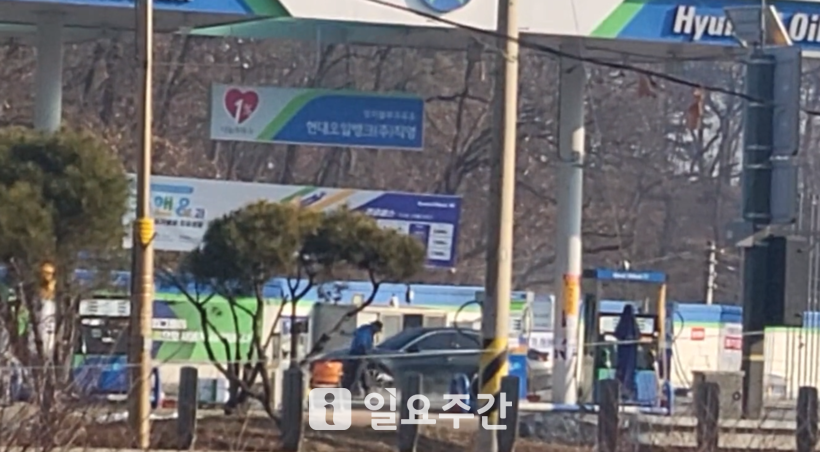 [일요주간 = 황성달/김상영 기자] 경기도 용인시 처인구 양지면에 위치한 현대오일뱅크 직영주유소에서 불법 세차로 보이는 장면이 <일요주간> 취재진에 포착했다.