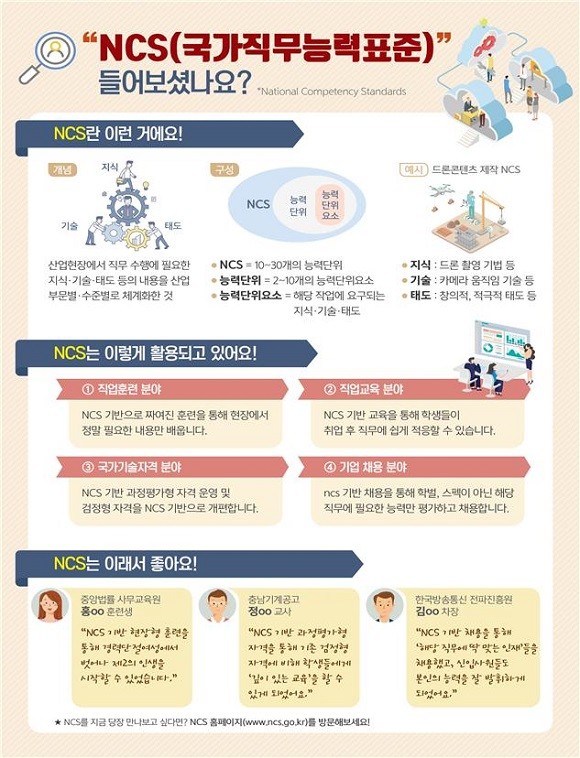 장신철 직업능력정책국장은 “스마트 설비·설계, 한옥 시공, 레저선박 몰드 제작, 리조트 운영 관리 등의 NCS 개발로 국가직무능력표준에 기반을 둔 특성화고 교육과 직업 훈련, 관련 자격 신설, 일자리 창출 등이 활발하게 이루어질 것”이라고 전망했다.
