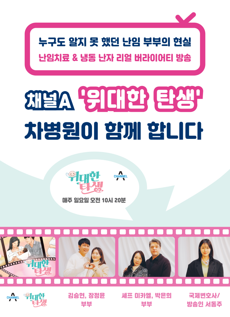 [일요주간 = 하수은 기자] 차병원 난임 전문의 3명의 교수가 종편채널 채널A에서 반영하는 시험관 아기 시술 리얼리티 프로그램 '위대한 탄생'에 출연한다.