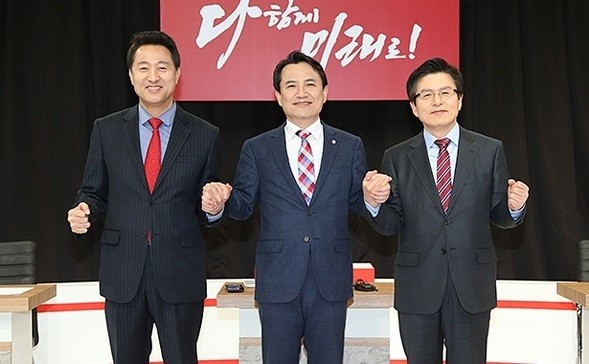 15~17일 아시아투데이가 알앤써치에 의뢰해 실시한 여론조사에서도 한국당 지지층으로 한정할 경우 황 후보는 50.6%의 지지율로 단독 선두였다. 김진태(18.7%)ㆍ오세훈(17.5%) 후보는 오차범위 안에서 접전을 벌였다. 한국당 대표 경선은 책임당원·일반당원·대의원의 투표 비중이 70%(30%는 일반국민 여론조사)를 차지하기 때문에 민심(民心)보단 당심(黨心)의 향배가 결정적이다. 지금까지 정견 발표와 토론회 등에서 세 후보자 사이에 가장 큰 쟁점은 박근혜 전 대통령에 대한 시각차였다.