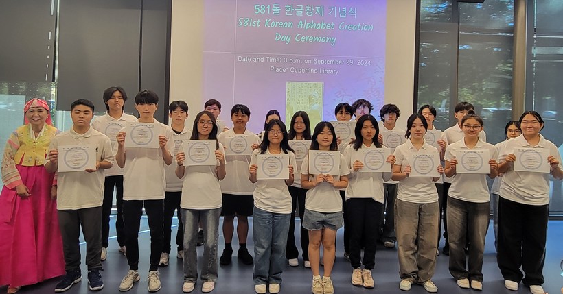9월 29일(일) 오후 3시 쿠퍼티노 시립도서관 강당에서 한국어교육재단 (이사장 구은희) 주최로 제581돌 한글창제 기념식이 열렸다. 특별히 행사에서는 시니어로 구성된 카투리 무용단과 청춘합창단 및 앙상블이 함께 해서 의미를 더했다.