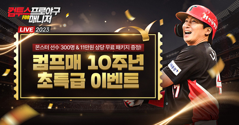 [일요주간 = 이수근 기자] 컴투스(대표 이주환)가 서비스하고 에이스 프로젝트(대표 박성훈)가 개발한 ‘컴투스프로야구 for 매니저’가 출시 10주년(10월 10일)을 기념해 특급 이벤트를 펼치고 있다.