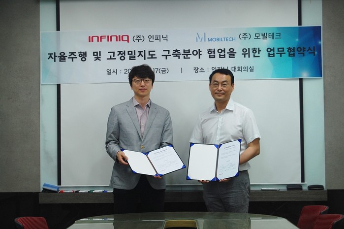 김재승 모빌테크 대표는 “당사가 수집한 측위 정보 기반의 주행영상이 인피닉의 고정밀 실측 자료(Ground Truth) 데이터 가공 서비스와 결합돼 큰 시너지를 내게 될 것”이라고 포부를 밝혔다.