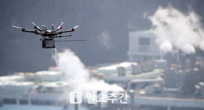 ▲ 환경부 국립환경과학원과 수도권대기환경청 미세먼지 감시팀이 드론을 이용해 미세먼지 배출사업장 단속을 진행하고 있는 모습. |