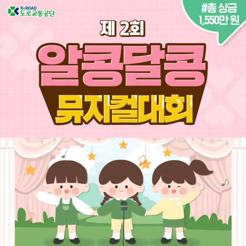 한편, 제2회 알콩달콩 뮤지컬 대회 접수 방법은 공단 누리집(홈페이지)(www.koroad.or.kr)에서 확인할 수 있다. 대회 관련 문의는 공단 이메일(koroadf@koroad.or.kr) 또는 카카오톡 채널(알콩달콩 어린이 뮤지컬 대회)을 통해 가능하다.