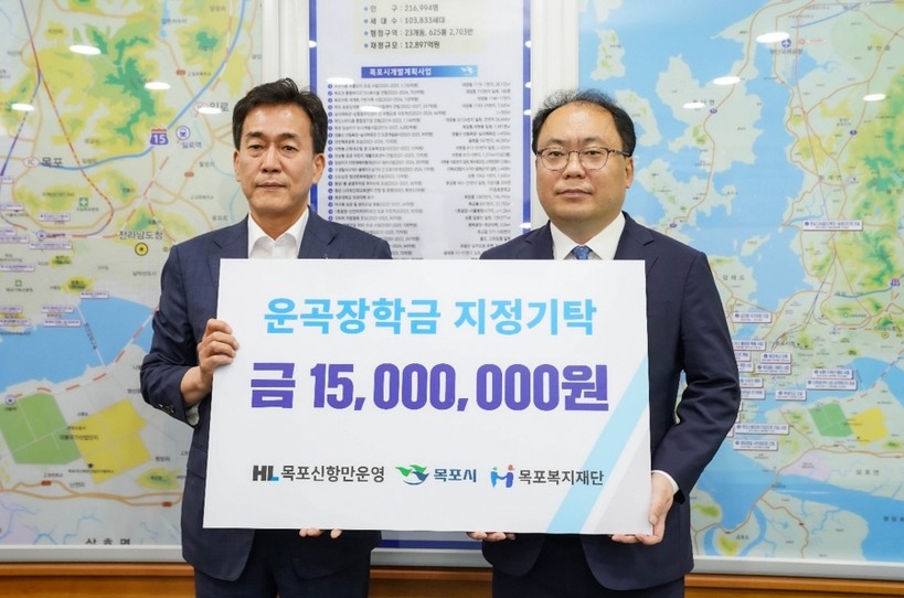 [일요주간 = 김성환 기자] HL목포신항만운영(주)는 지난 24일 저소득 대학생을 위한 운곡(雲谷)장학금 1500만 원을 목포복지재단에 지정 기탁했다고 30일 밝혔다.
