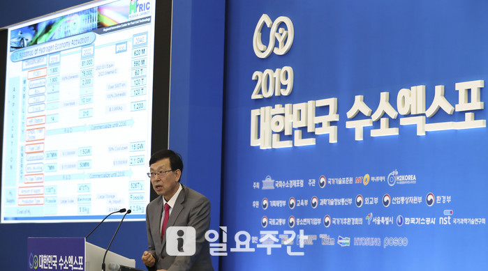 | ▲ 지난 6월 19일 서울 중구 동대문디자인플라자에서 열린 '2019 대한민국 수소엑스포' 세션1 '수소중심 에너지 패러다임 전환을 위한 글로벌 포럼' 에서는 우리 경제의 미래 성장동력으로 부상하고 있는 수소 관련 산업 및 과학기술의 현주소와 정책방향, 향후 발전 방향을 종합적으로 소개돼 눈길을 끌었다. |