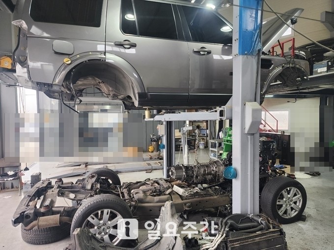 ▲A 씨가 인천 서구에 위치한 중고차 매장에서 구입한 랜드로버 디스커버리 차량을 정비하고 있는 모습.(사진=제보자 제공) |