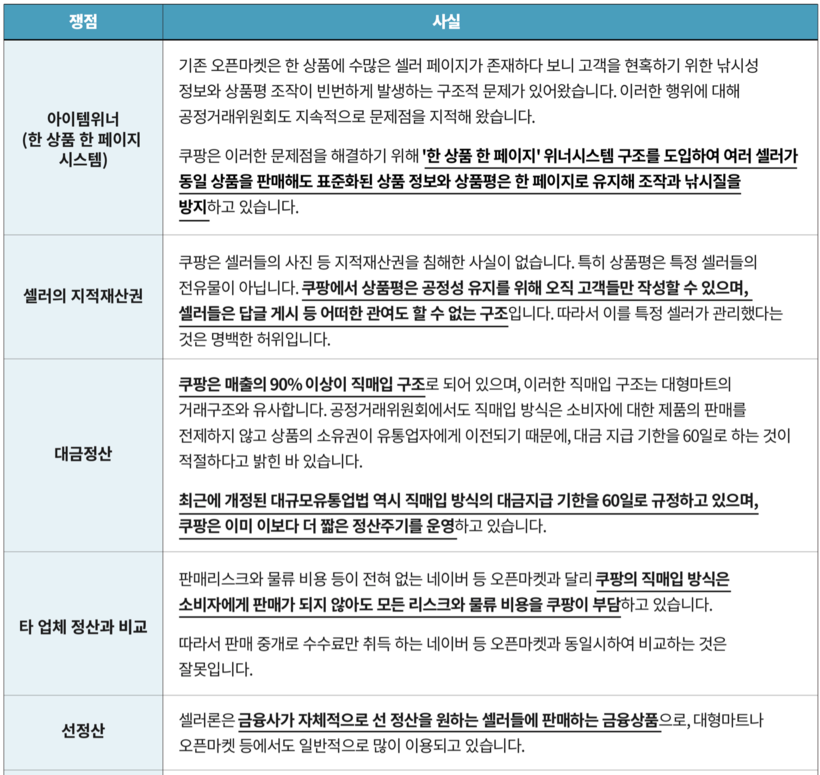-쿠팡 "위너시스템 도입해 상품평 조작 등 방지...대규모유통업법, 직매입 방식 대금지급 기한 60일 규정"