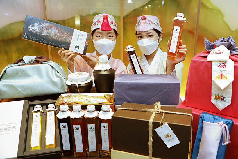▲ 모델들이 명절선물세트를 홍보하고 있는 모습. (사진=롯데백화점)